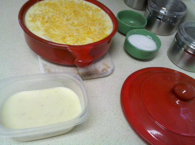 - Preheat oven to 400 degrees F . Butter a 1 quart casserole dish.