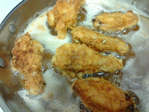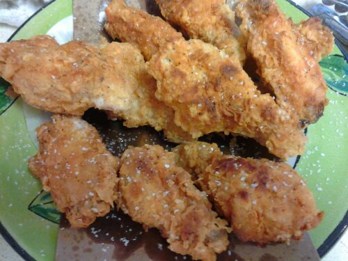 Simple, again, can be the best. Typical dipping #fresh lightly seasoned chicken in seasoned flour, beaten eggs, back in seasoned flour, into heated fry pan with inch or 2 of oil. About 3 minutes each side med-high heat. Drain. Corn, I usually do on grill but this time inside/water.