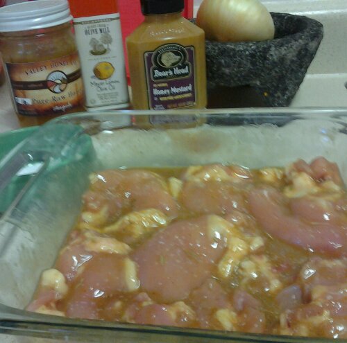 Loosely (lol) adapted from Simply Recipes- http://www.simplyrecipes.com/recipes/honey_mustard_chicken/