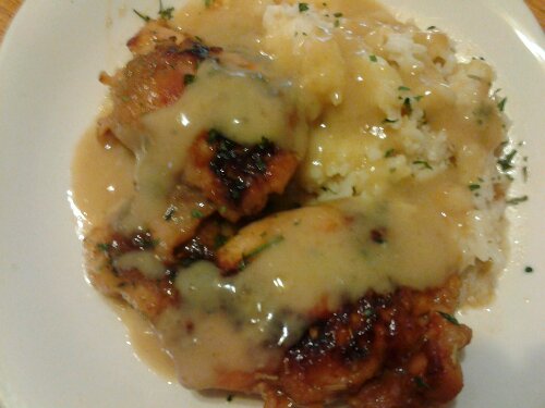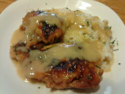 After, I removed chicken to platter & wisked in tbs cornstarch (slurry) to make sauce/gravy (although i usually use flour/roux), also adding a cup of chicken stock. Sweet