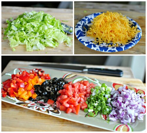 There’s soooo many taco salad recipes. Another one of those dishes that’s up to personal taste. And I don’t follow a recipe. I put together ingredients I personally like.