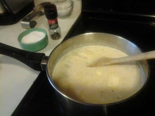 Need- potatoes, onions, evaporated milk, butter, salt & pepper.