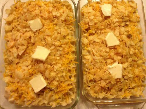 Choice for crunchy topping. This time I used potato chips & more cheese…couple pats of butter