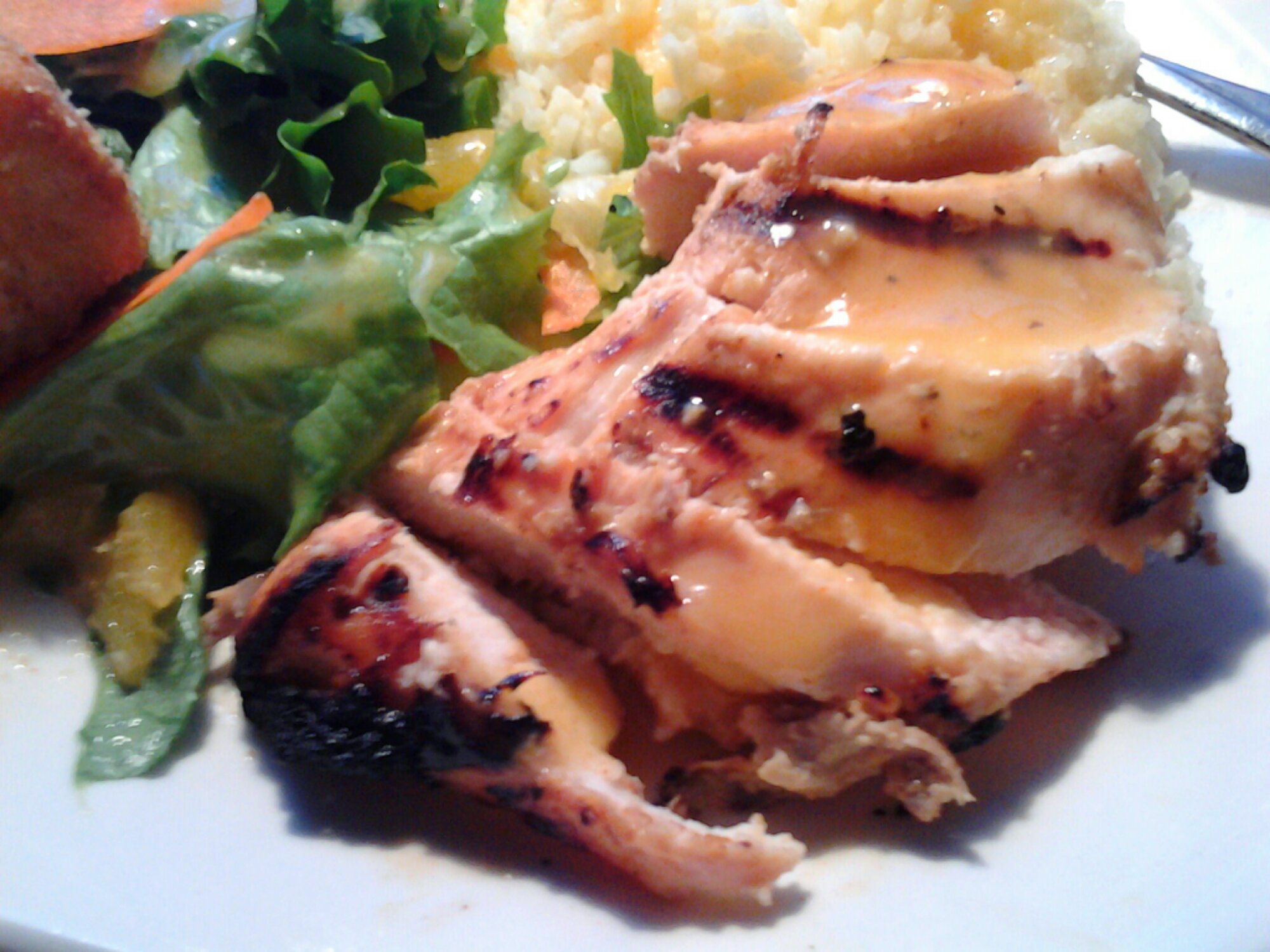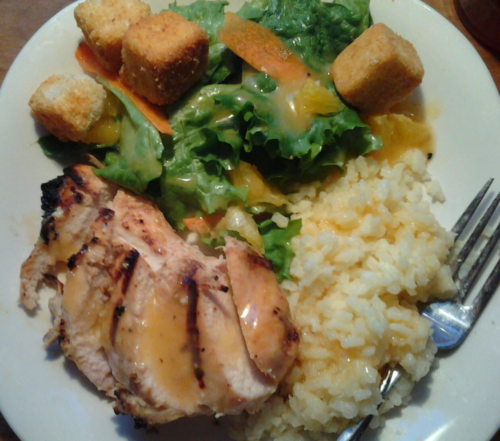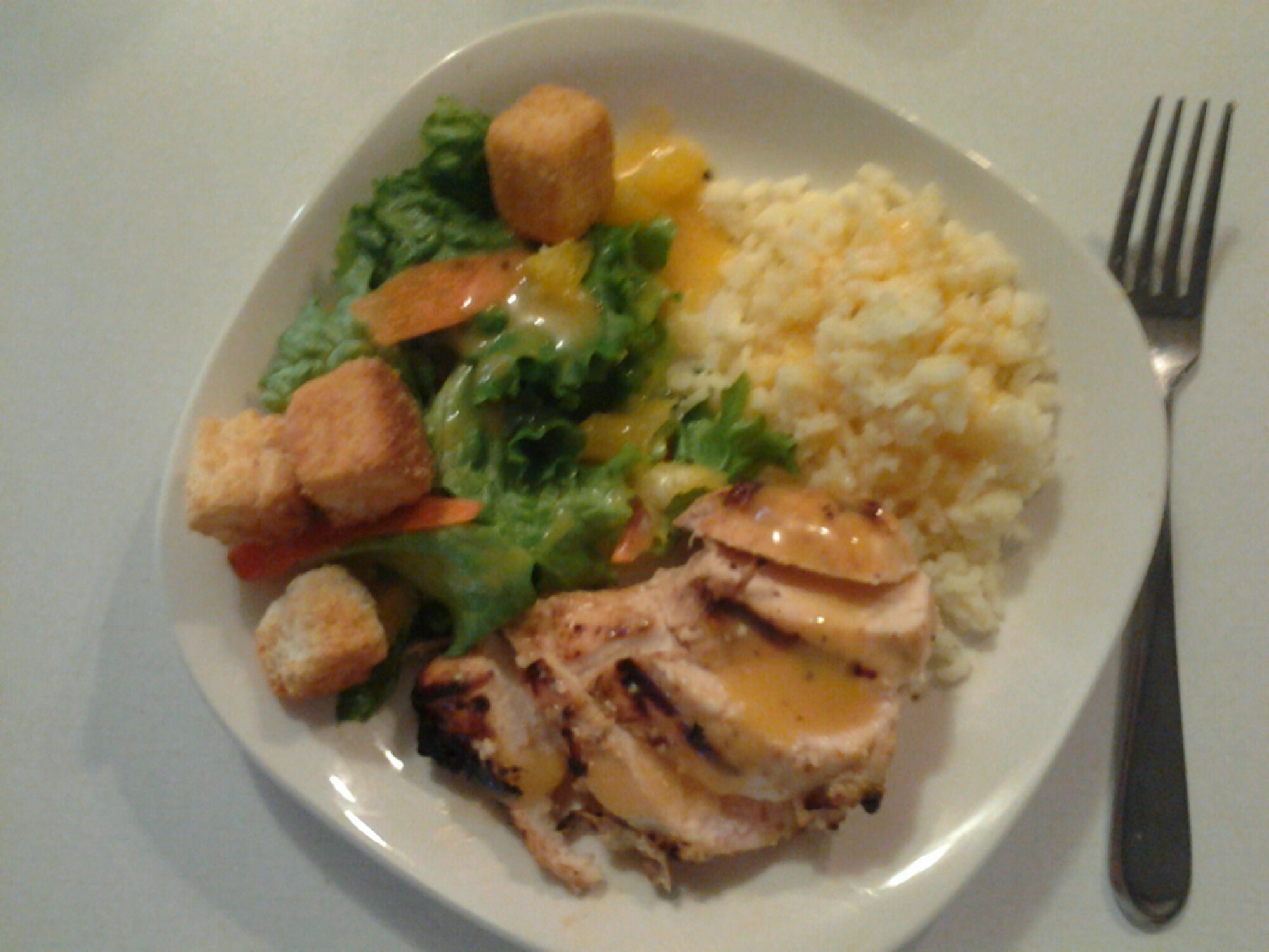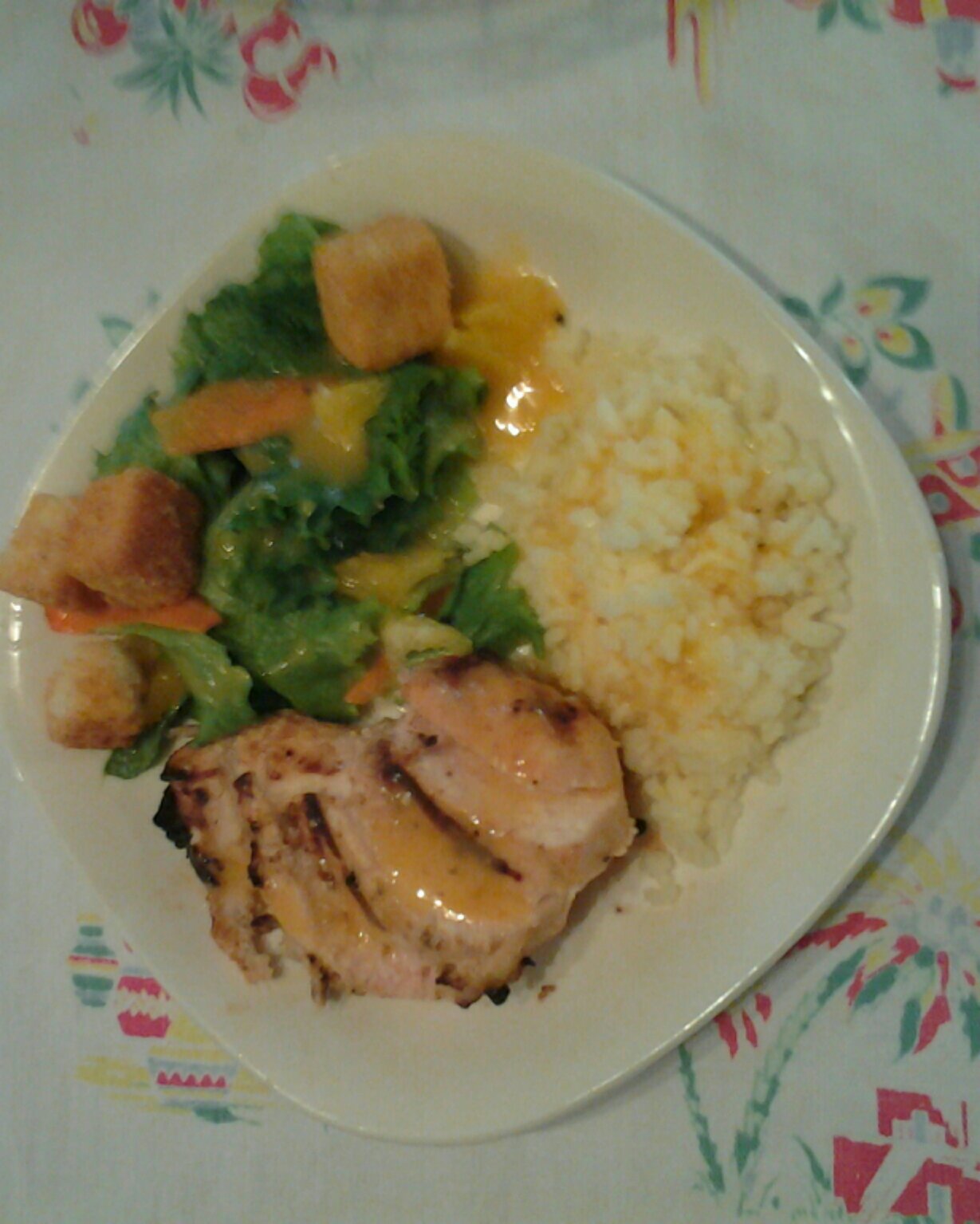 Free Range local chicken, Adobo, orange, and mango marinade served with rice. A fresh salad made with local farm lettuce and mango chipotle dressing… which I enjoyed immensely.