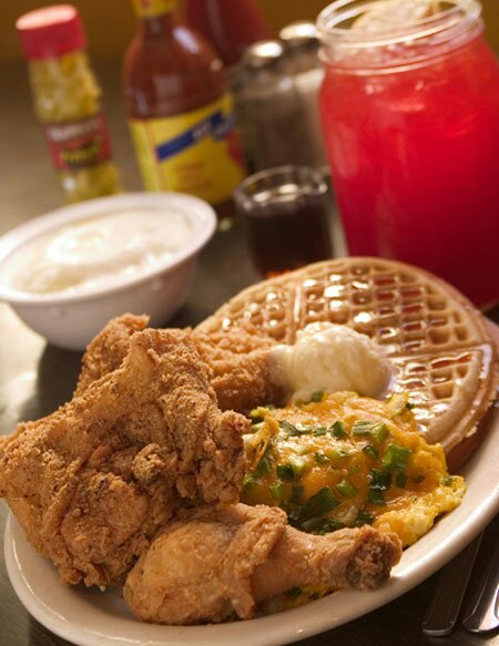 “It was invented by the singers and musicians who performed during the neighborhood’s famous Jazz Age,” He tells Yahoo! Shine. “Their gigs would last until the early hours of the morning. Hungry after a long night, they found fried chicken fit the bill, but at the same time, the sun would be rising and a breakfast of waffles sounded pretty good, too.”