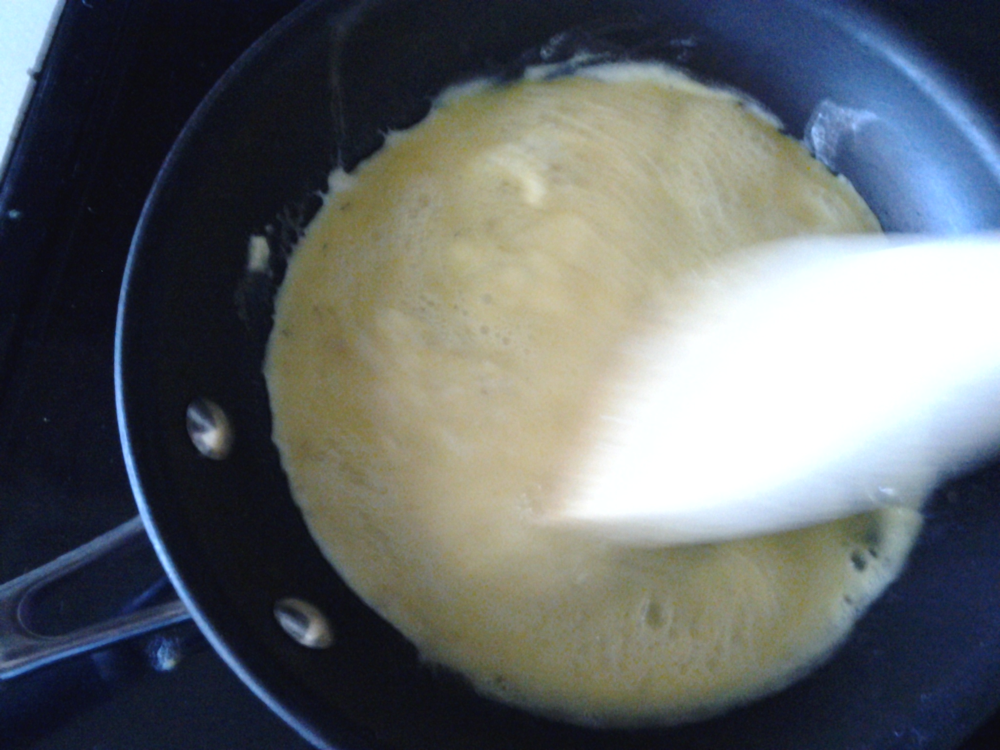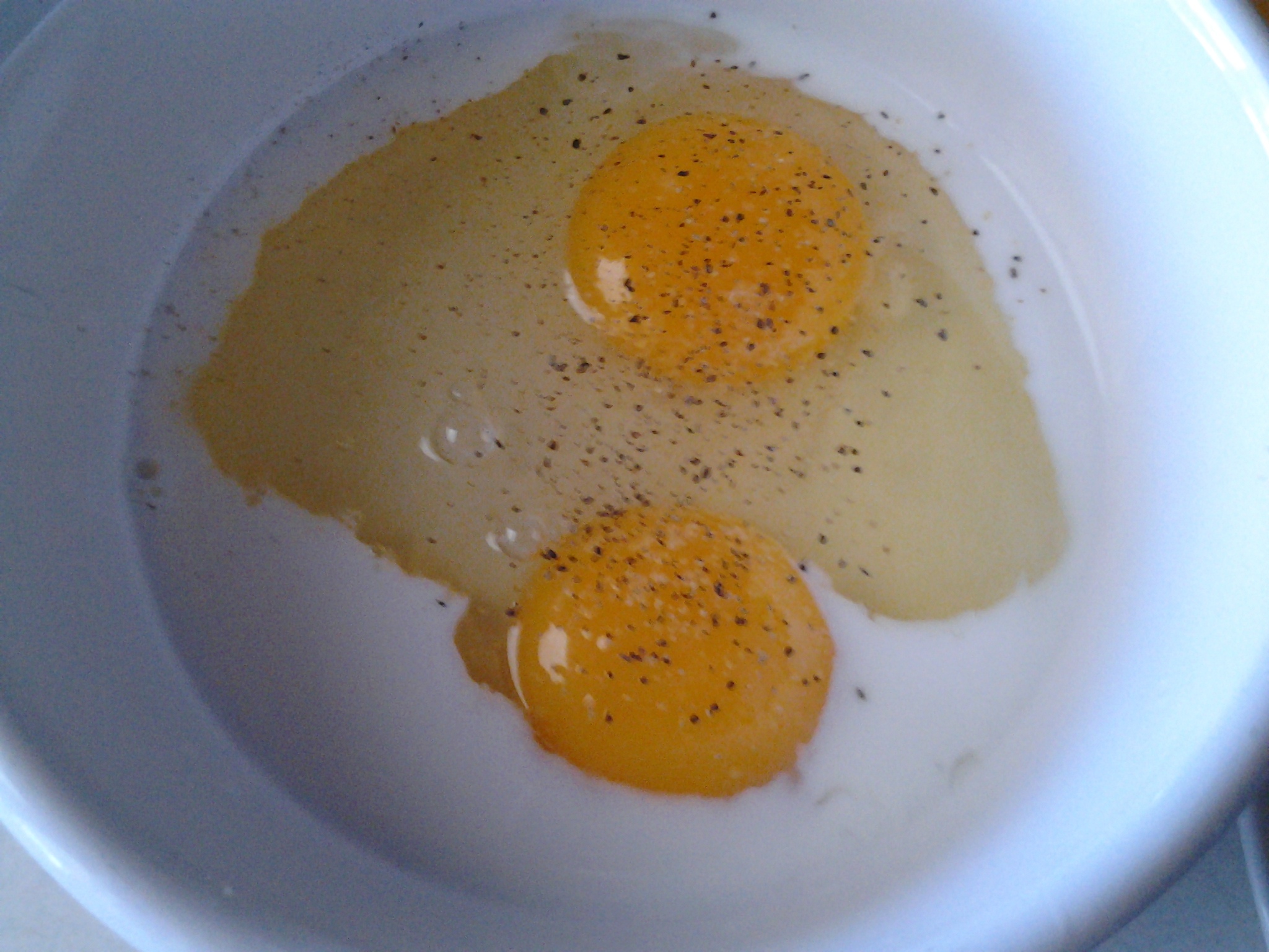 Add English muffin, set ham bone aside (on top… for Lucy/the dog 😉 ) in ready to go outdoors to eat, on patio.