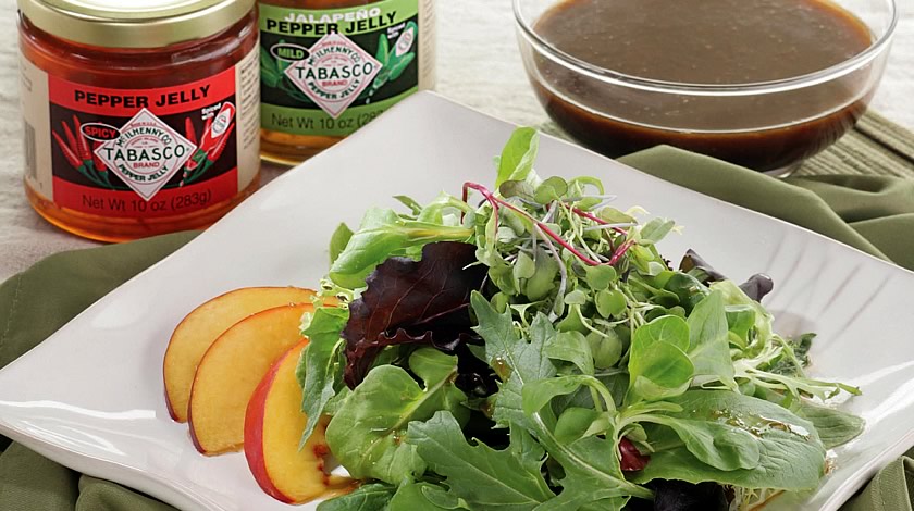 Pepper Jelly garnishes Chef Jeremy Ashby’s Ham Hock and Goat Cheese Wonton [Cilantro and Hot Pepper Jelly Recipe]