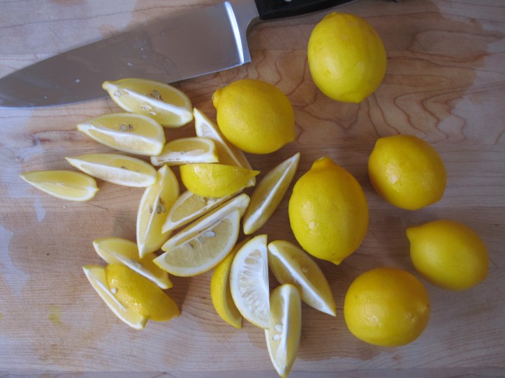 Yes, it is true, I’m on a serious citrus kick. Why not? What better to brighten the palette on a dark and dreary winter day, than the vibrant colors and tart flavors of lemons, oranges, grapefruit, and lime? Lemons are my current favorite. Last summer, in an act of manifest destiny, we cut down our lemon tree to make way for a larger outdoor dining area. Luckily our neighbors have supplied us with a steady stream of Meyer lemons to fuel each of my citric indulgences. The latest… Salt Preserved Lemons.