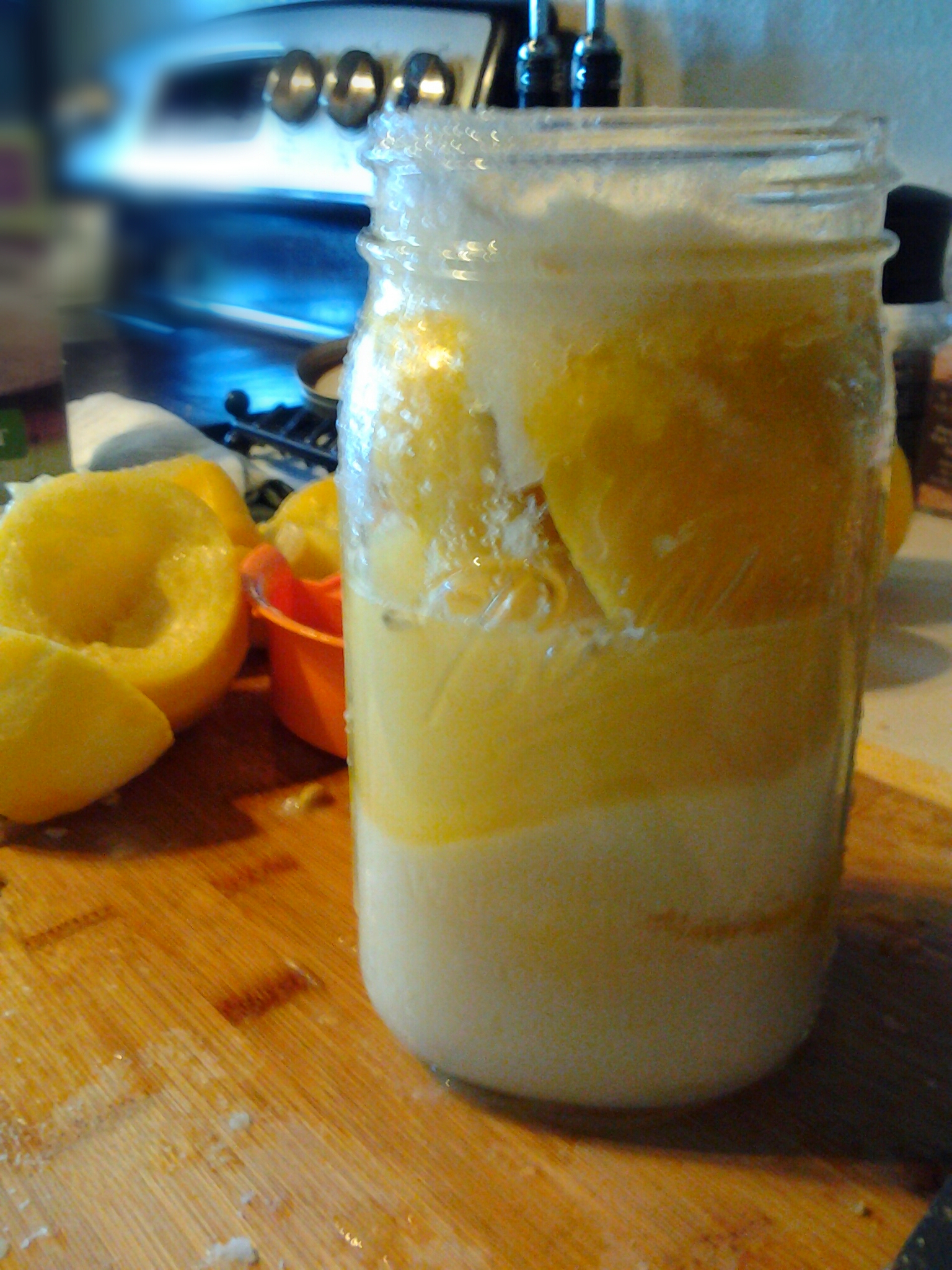 4. Over a bowl to catch any juice slightly squeeze each lemon to open the cuts. Force around 1/2T sea salt into each cut. Place lemons in the jar, sprinkling a few tablespoons of salt as you go.
