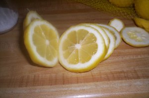Now slice up your fruit, in this case lemons.