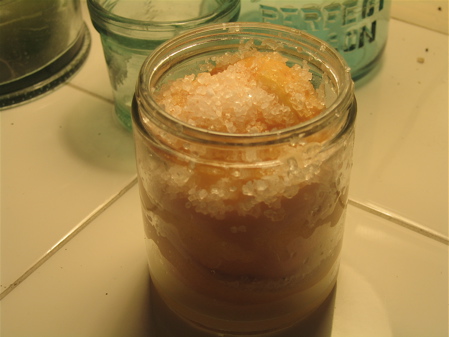 Put a layer of kosher salt in the bottom of a pint canning jar. Make the layer about 1/2 inch or so deep.