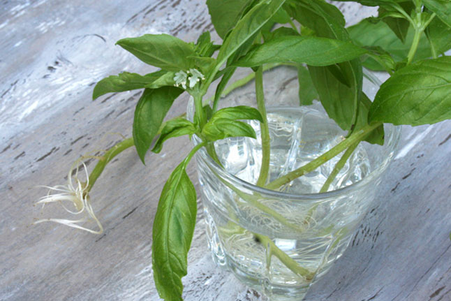 Snip stem cuttings before the first frost of the season and stick them in a cup of water, they should start showing roots within about 7 days. You could also dig up the plant and pot it for indoors. Make sure to choose a location inside where it will receive plenty of light and will be protected from cold drafts. Basil can be planted alone but it grows well with other herbs too. See Herb Garden Ideas for tips. It’s also a great choice for a kitchen herb pot since it’s so useful in cooking.