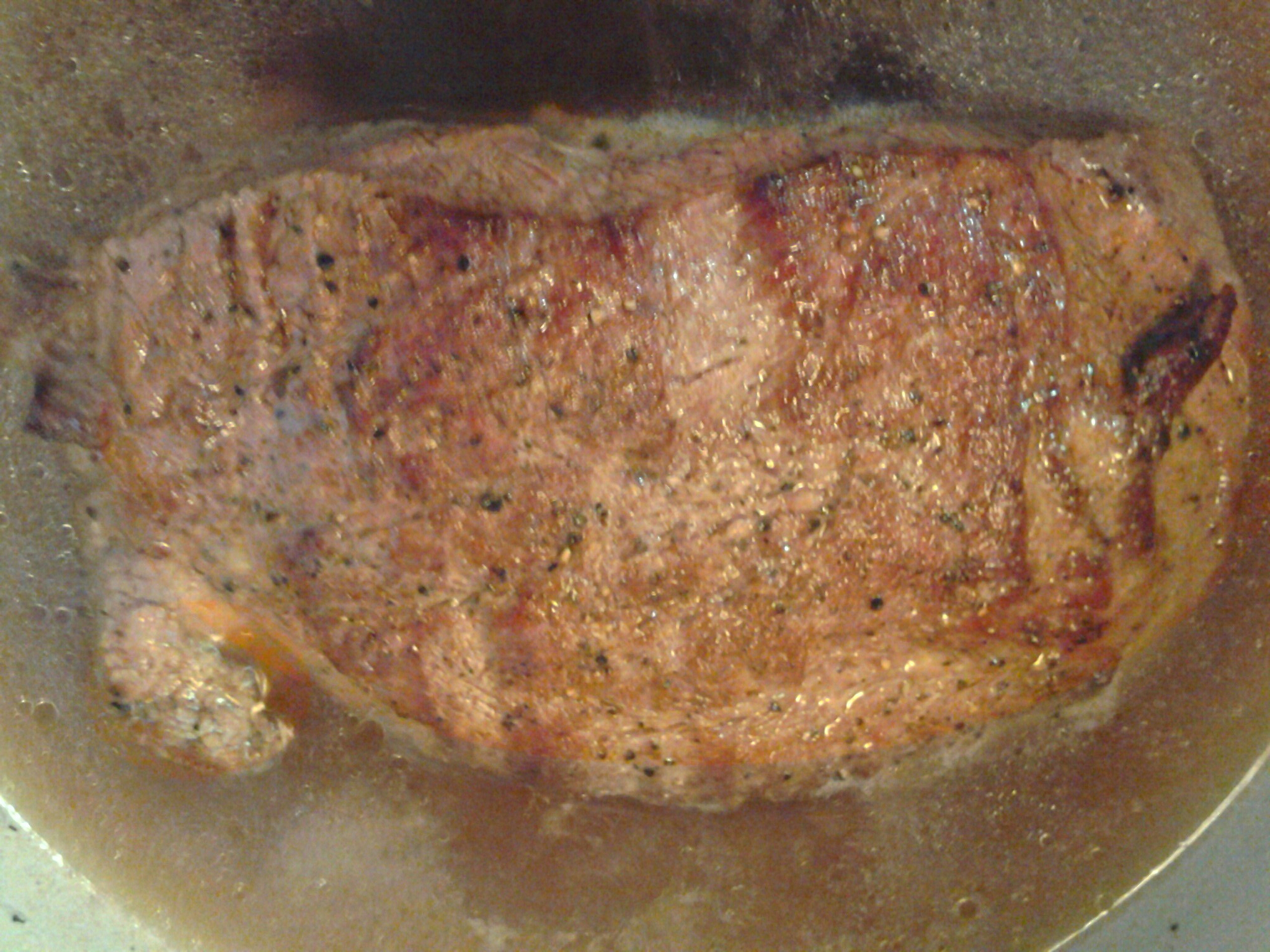 4. Melt 2oz butter with 2oz of olive oil, and add the beef strips. Stir until cooked and remove to a container. If using leftovers, heat thru.