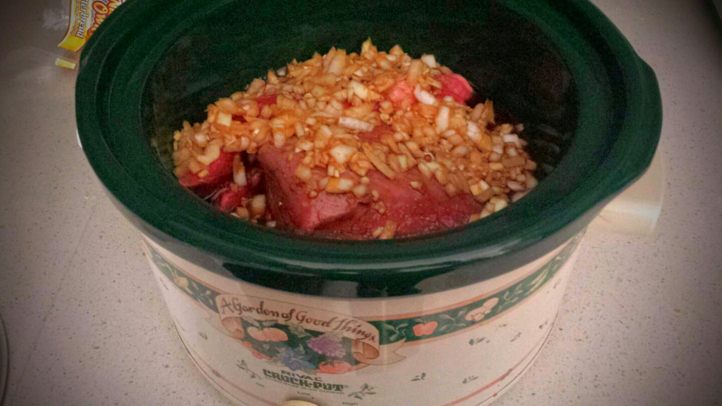 Place meat in slow cooker.