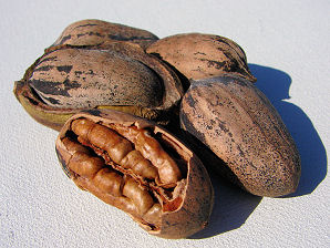 Outlined against the illuminating midwinter sky, delicate black branches of the pecan tree gently wave like arthritic hands toward heaven in prayer. Emerald fruit the size of a newborn’s fist are scattered under the bowing boughs of the ancient pecan tree. Mossy jackets peel away like damp pieces of cardboard, revealing a black and brown tiger striped shell.