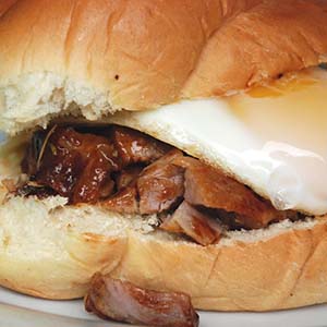OPEN-FACED BARBECUE SANDWICH WITH FRIED FREE RANGE EGG