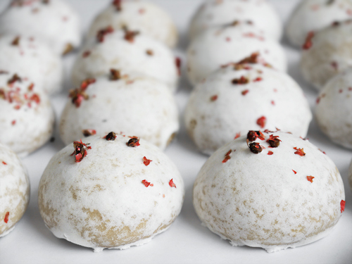 I’ve also jazzed up the decoration of these cookies – rather than just simple white icing, I added a sprinkling of crushed red peppercorns. This makes for a jaunty little festive touch and a little extra bit of extra peppery punch. It’s warm and aromatic, but without being too hot.