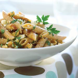 Whole-grain Penne with Walnuts, Caramelized Onions, and Ricotta Salata