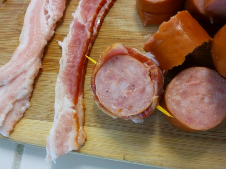 Easy Appetizer – Slow Cooker Glazed Bacon Wrapped Sausage Bites