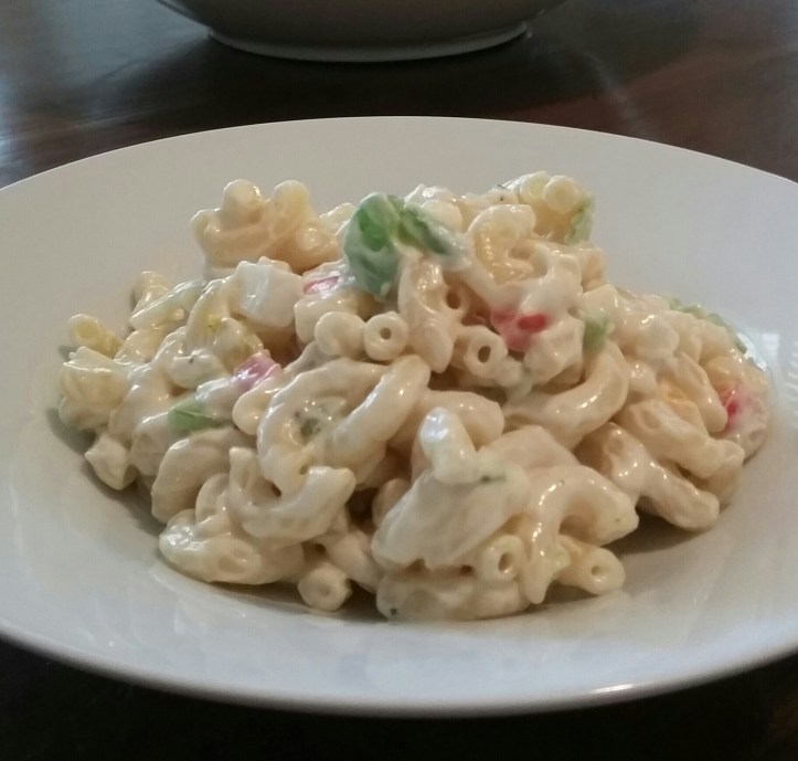 Mix mayonnaise, vinegar, Dijon Mustard, sugar, salt and pepper in large bowl. Stir in macaroni, celery,  peppers and onion. Serve chilled.