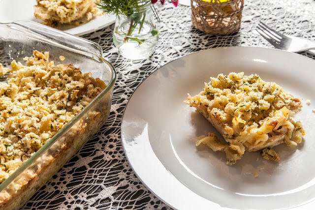 Tuna noodle casserole is a thing with the potential of sending a chill down the spines of Baby Boomers, who knew it as a salty, gloppy, and mostly gray pile of cafeteria lunch in elementary school. In the late 1980s, scores of recipes for honest remakes (using good ingredients and respecting the textures of just-cooked noodles, a creamy sauce, and a crispy topping, be it toasted bread crumbs or crunched-up chips or crackers) appeared. This recipe is in the latter category, tuna noodle casserole redux, if you will, something to wipe away Boomer memories of weird-smelling school cafeterias. Using the right kind of canned tuna is everything. Our favorite is premium tuna packed in olive oil (we particularly like Ortiz Bonito del Norte).