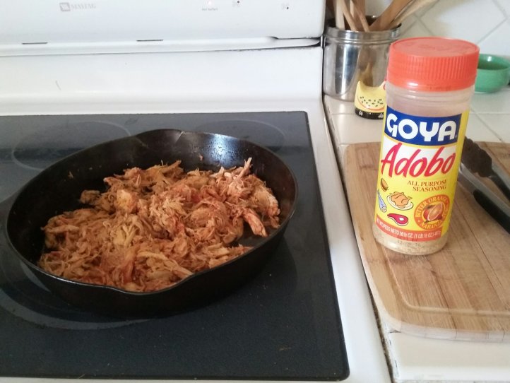SEASON! Cumin, garlic, onion, Goya, chilies, salt & pepper. Taste test. I like Goya Seasonings (bitter orange on this one), a little tomato sauce..and a little chicken stock if chicken gets too dry. Diced tomatoes (although for granddaughter I did that over a strainer so she wouldn’t see chunks of tomatoes) or tomato sauce.