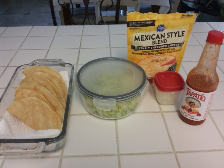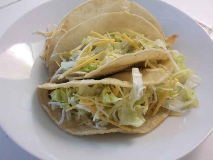 When meat is done, turn to lowest setting and make taco shells. Most often it’s corn tortillas but we don’t mind “soft tacos” with flour tortillas if we run out.