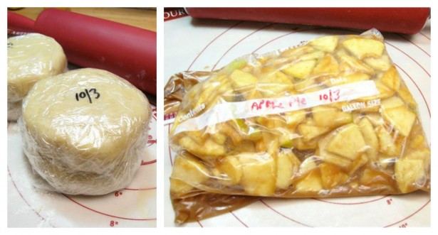 The first thing I tried was making the crust, shaping it into disks, and freezing. Ditto the filling: preparing the fruit, adding the sugar, spice, and thickener, and freezing.