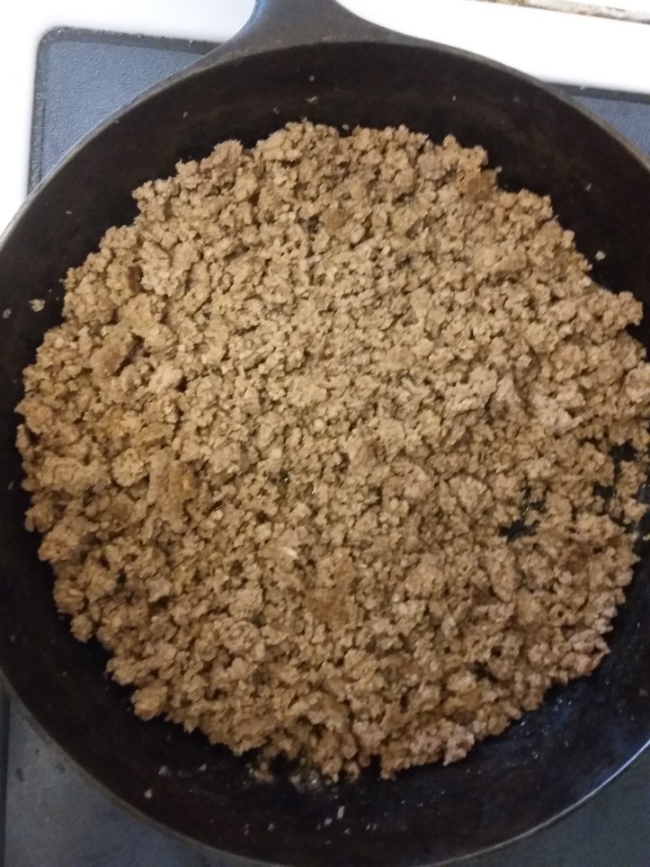 In this version you can either layer veggies, meat & potatoes or mix veggies into meat.