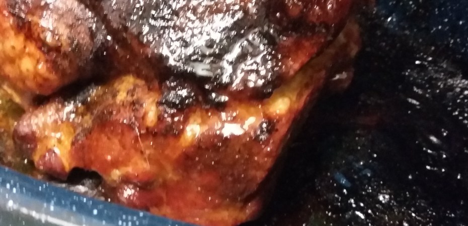 Oven roasted pork butt (shoulder) that’s juicy and tender on the inside and has a dark crispy skin or brown crunchy crust on the outside. It worked perfectly.