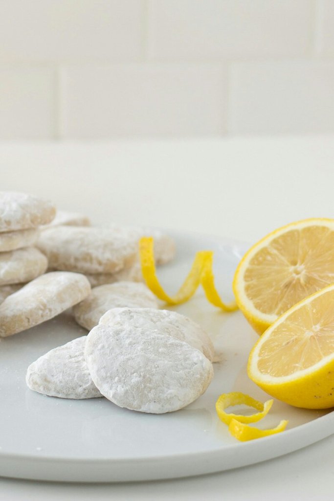 Bake for 15 to 20 minutes, until cookies are lightly browned at the edges. Cool on the baking sheet for 10 minutes, then transfer cookies to a wire rack to cool completely. Dip the cooled cookies into the remaining 1/2 cup (60 grams) of confectioners’ sugar & lemon powder.