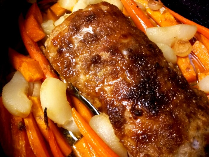Pork Roast with Carrots, Sweet Potatoes and Onions