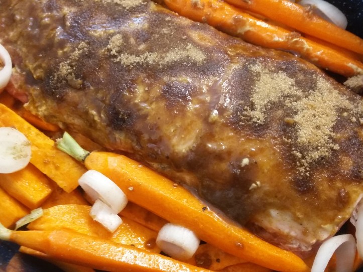 Kind of a repeat except I just went with carrots, sweet potatoes and onions this time. I also didn’t marinate it this time.