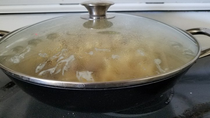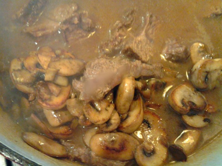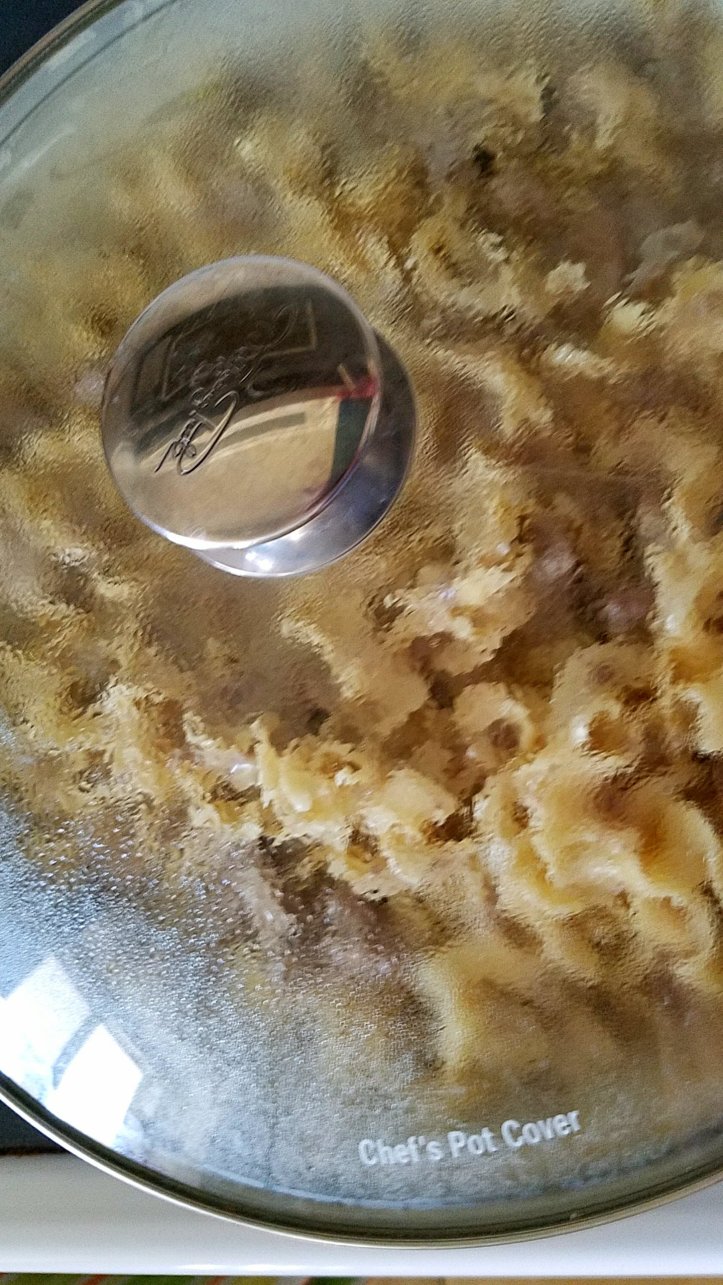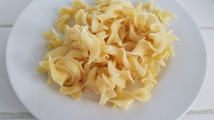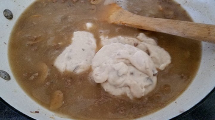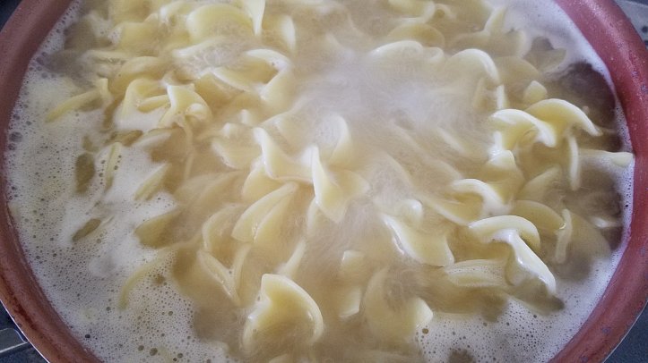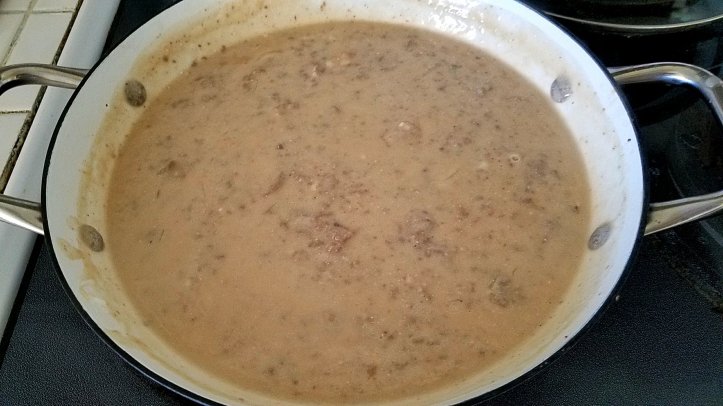 For myself i served egg noodles with stroganoff on top; for family (who were not home yet) i mixed it all in same pot.