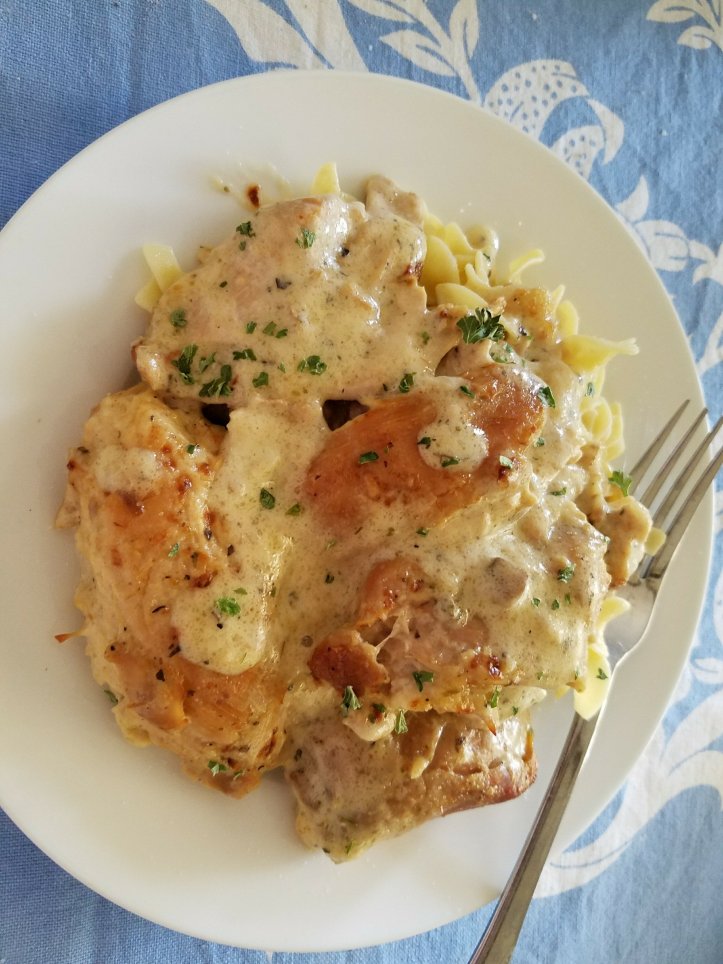 Slow Cooker Chicken thighs with a creamy sauce ~