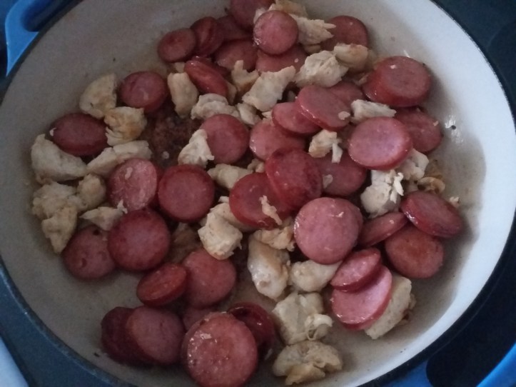 - 1 pound andouille sausage, cut into 1/2-inch pieces