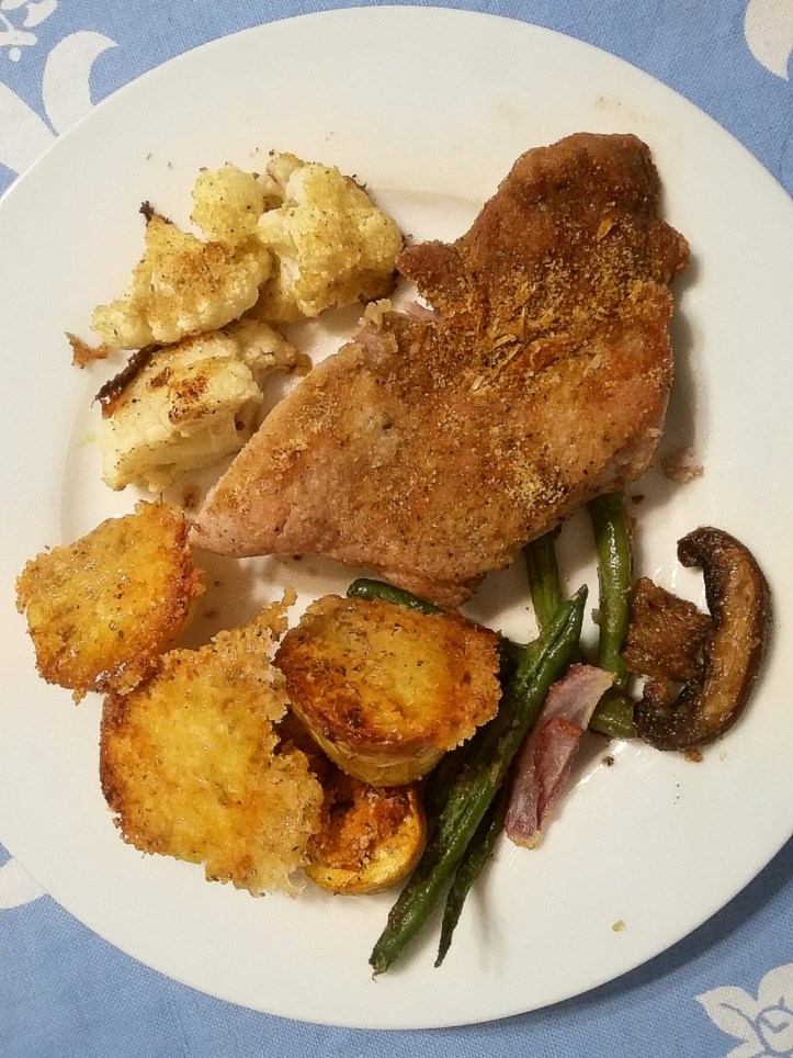 I made these along with sheet pan parmesan crusted pork chops and vegetables; matching the seasoning over all; green beans with onions & mushrooms and roasted cauliflower.
