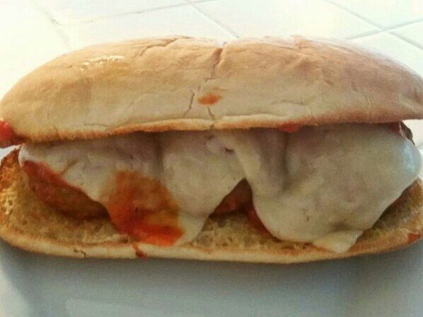 Place rolls or french bread on sheet pan. Drizzle or brush on evoo and sprinkle with garlic powder. With spoon (to catch some sauce along with) line meatballs on bottom of sub roll, top with cheese, usually mozzarella but on these my daughter bought an Italian mix cheese slices. And we love them all! I take some of the breading from inside top roll so there’s more room for meatballs. Place under broiler just long enough to melt cheese and toast roll. You can add more sauce. Even more cheese. My daughter added shredded Romano on hers. ENJOY.