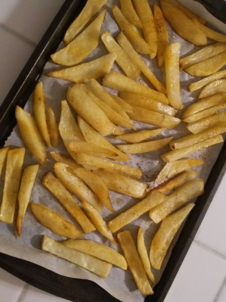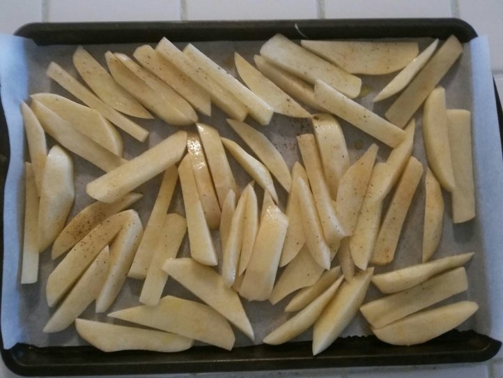 I put the potatoes/fries on a sheet pan and in oven with chicken after the first 25 minutes.