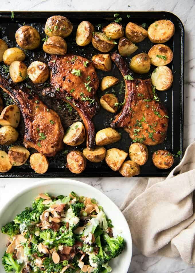 Oven Baked Pork Chops with PotatoesPrep10 minsCook30 minsTotal40 minsRecipe video below. Made with ingredients you probably already have in your pantry, these pork chops are slathered in a country-style sauce then baked until sticky and golden. Add potatoes or any other vegetable that will bake in around the same time! This recipe is fabulous as it is but lends itself to many variations so add your own touch! MARINATING IS OPTIONAL. This is also great with CHICKEN.IngredientsRub