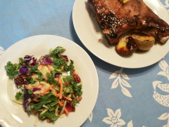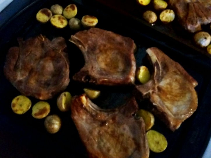 OH and by the way, why is MY pork chop shaped funny? Sort of like pacman? Because, believe it or not, that is the part of my granddaughter’s chop…that she DIDN’T want! Yeah, teenagers! Works for me.