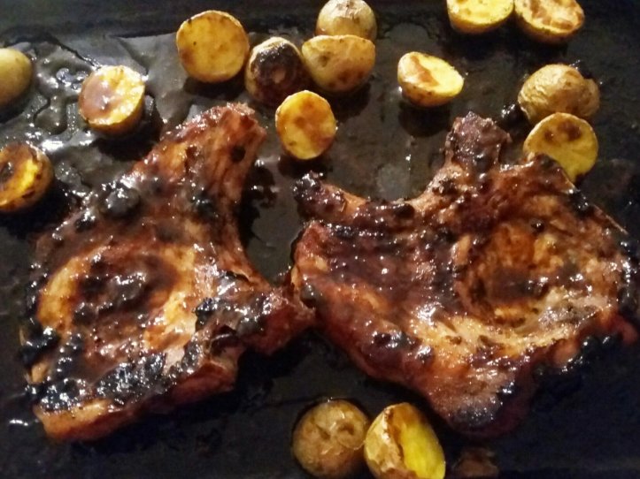 You’ll see in pics that I did spoon drippings from pan onto chops…that stuff is good.