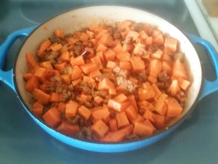 3 halfbaked sweet potatoes, cut in cubes (baking optional)