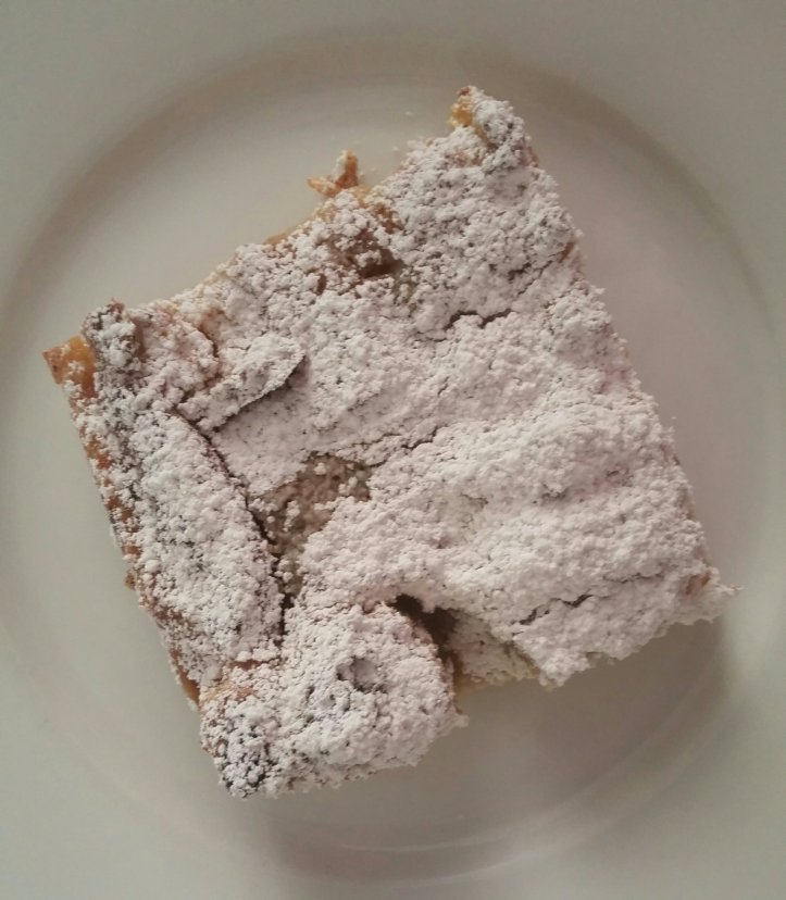 Okay…and I made it snow confectioners sugar too. It was so tasty! Especially the crunchy parts on top. YummO!