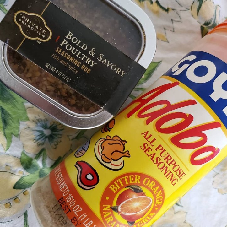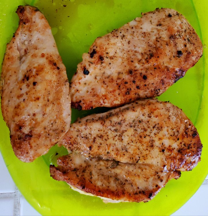Seasoned with salt, pepper, drizzle of liquid smoke, onion powder, a bold & savory seasoning (spicy) I have, rubbed it into chops, and seared pork chops in hot cast iron skillet that had 2 TBS oil.. Set aside.