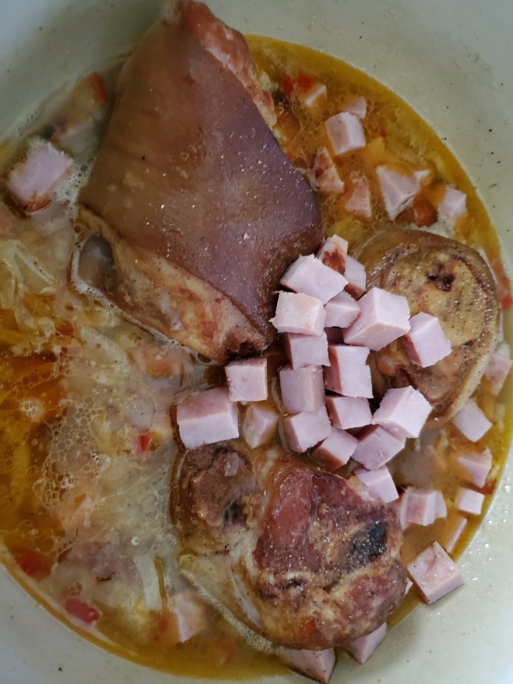 I made my own cream of mushroom and roasted garlic soup, using same skillet (with chops set aside)…starting with sauteing mushrooms in couple TBS oil & TBS butter, added roasted garlic, made a roux…adding flour on mushrooms & stirring until flour taste cooks out, added milk & cream to desired consistency (can’t remember if I used any broth to thin it out. I don’t think so), about … um 4 cups total of sauce/gravy (well, I did end up using 7 potatoes & 6 chops this time 🤭. Salt, pepper, Better than Bouillon roasted garlic base, a little Better than Bouillon beef base, Goya Pork seasoning, Worcestershire sauce… I’m thinking! I’m thinking! 🤭