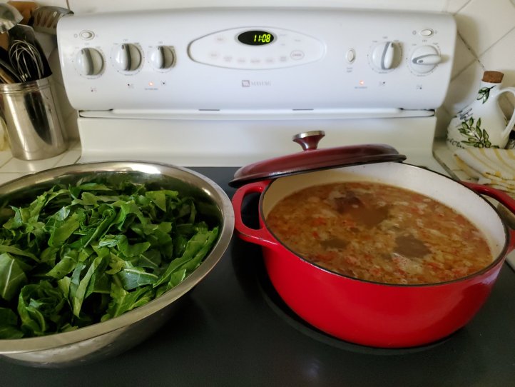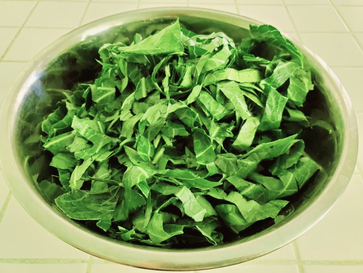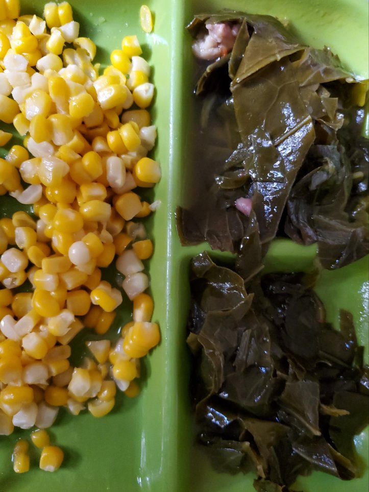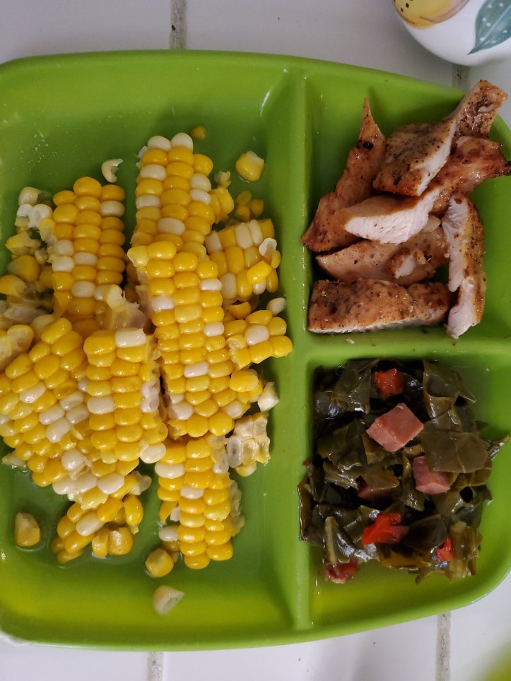 The next day we had leftover collards, so I made spicy (EASY) pan fried chicken and corn on the cob. Was so good.