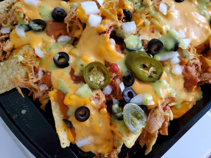 I made chicken tinga the day before yesterday; so it was chicken tinga tacos (following same procedure as beef tacos) first, next day was chicken tinga nachos (following same procedure as pork nachos) now today was tacos again but with flour tortillas (it’s what I had) 😉🌮🌶 I know! I usually put it all except chicken in blender “first” but this was a happy accident 😜👏💗 I had chicken & was thinking fajitas BUT those New Mexico Dried Hatch Chile Pods, chili pods were calling out my name! 😁 So I cooked the chicken in all that flavor, until it was fall apart tender, then shredded it.