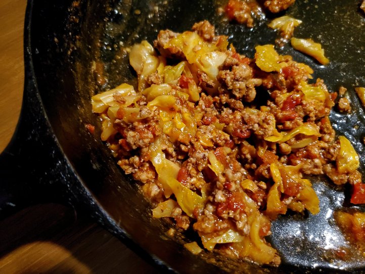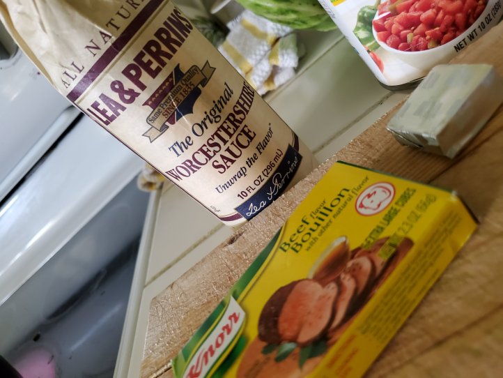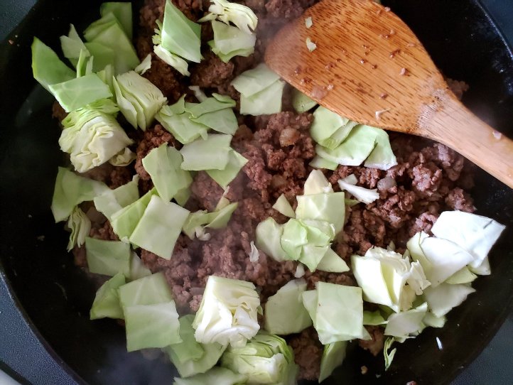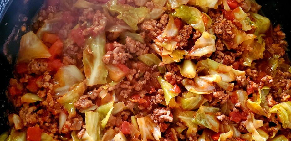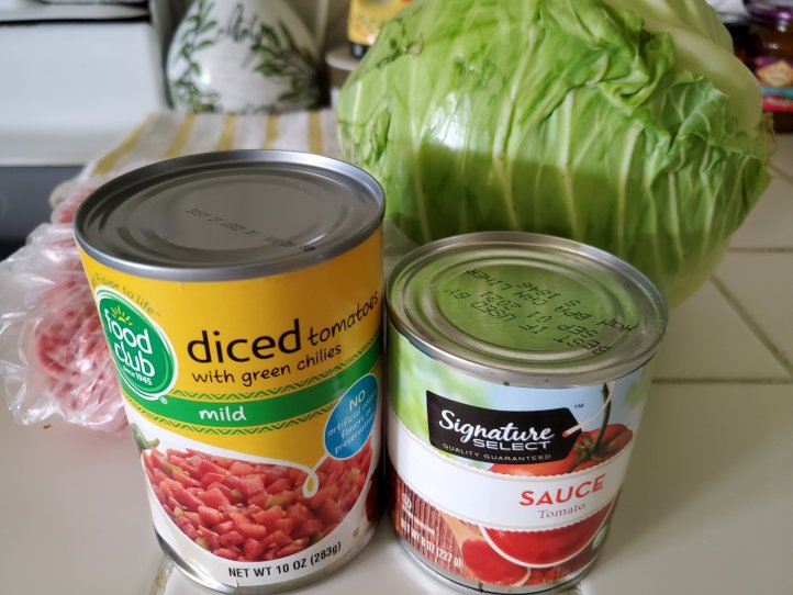Firstly I used only green cabbage, I added Lea & Perrins Worcestershire sauce, Knorr beef bouillon and Roasted Red Peppers via a thick “spread” salsa/relish/paste type delicious mix I got from Baiz Market, middle eastern market & restaurant across the street from me; it’s great on sandwiches and also added to recipes‼ Below is original recipe.
