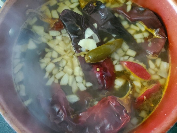 From what I’ve happened upon so far, it looks like I use a more chilies than others. It’s not by accident, I want the complexity & depth of the flavors from combination of different chilies. When I look at a recipe that says ONE chile, I’m like “Most likely they know more than I do in the culinary world, & definitely the ethnicity world, but I still go for multiple (and thick… before adding it to soup) chile type sauce”. I’ve stuck with it ever since my granddaughter was super happy about it, and ate bowl after bowl. It’s strange…🤷♀️ evidently I’ve developed a taste and liking for them. On the varying chilies I use, I could unknowingly be committing a culinary sin 😱 But, like I said in heading, we LIKE it 😁🌶🍅🥕🍈🌮